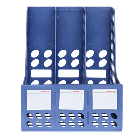 得力 9843 塑料 三档/三联 书架/文件筐/文件框/文件栏 蓝色 12个/盒